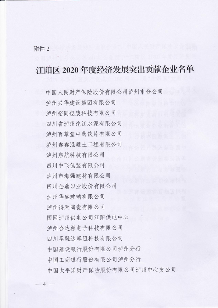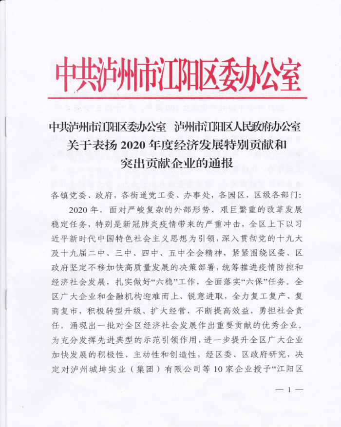 2021年4月20日上午,中共瀘州市江陽區(qū)委、瀘州市江陽區(qū)人民政府在江陽會議中心召開2021年區(qū)委經(jīng)濟(jì)工作會議,會議隆重表彰了在2020年為江陽區(qū)經(jīng)濟(jì)發(fā)展作出特別貢獻(xiàn)的優(yōu)秀企業(yè)10家,作出突出貢獻(xiàn)的優(yōu)秀企業(yè)60家,其中四川興順勞務(wù)代理有限公司再一次榜上有名,榮獲“瀘州市江陽區(qū)2020年度經(jīng)濟(jì)發(fā)展突出貢獻(xiàn)獎(jiǎng)”榮譽(yù)稱號。