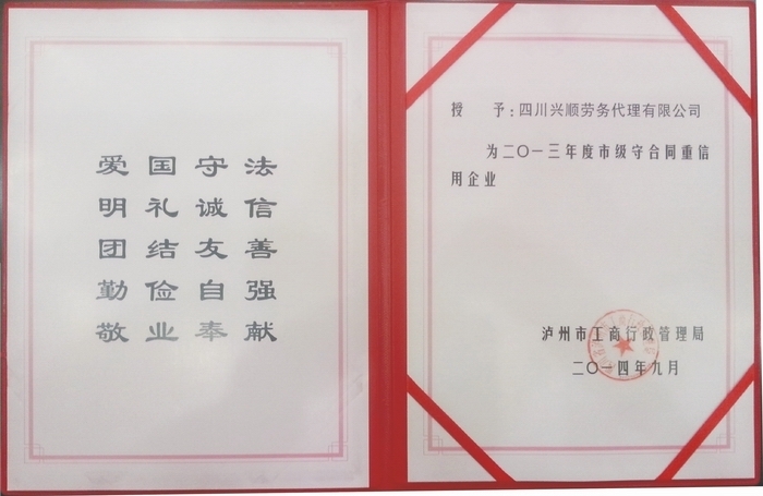 2013年守合同重信用企業(yè)(證書...