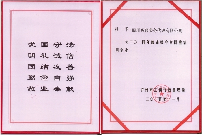 誠信企業(yè)證書