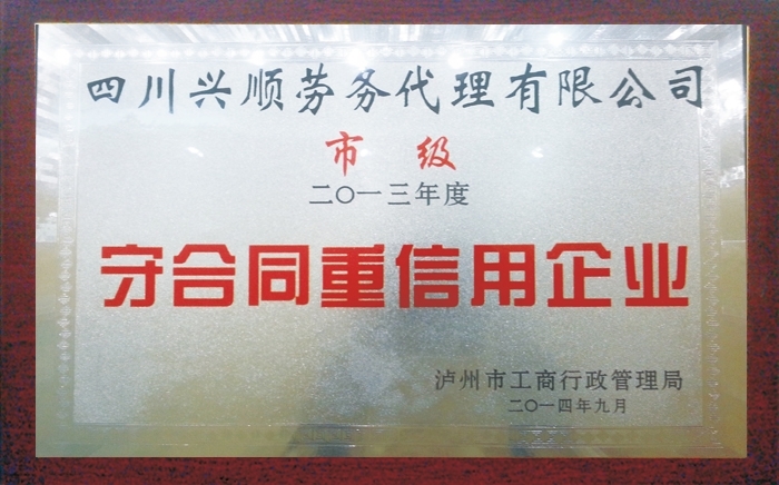 2013年守合同重信用企業(yè)(狀牌...