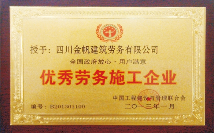 金帆全國(guó)優(yōu)秀建筑勞務(wù)企業(yè)