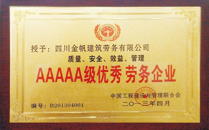 金帆五A級(jí)優(yōu)秀勞務(wù)企業(yè)