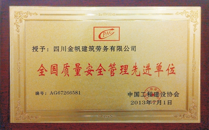 金帆全國(guó)質(zhì)量安全管理先進(jìn)單位...